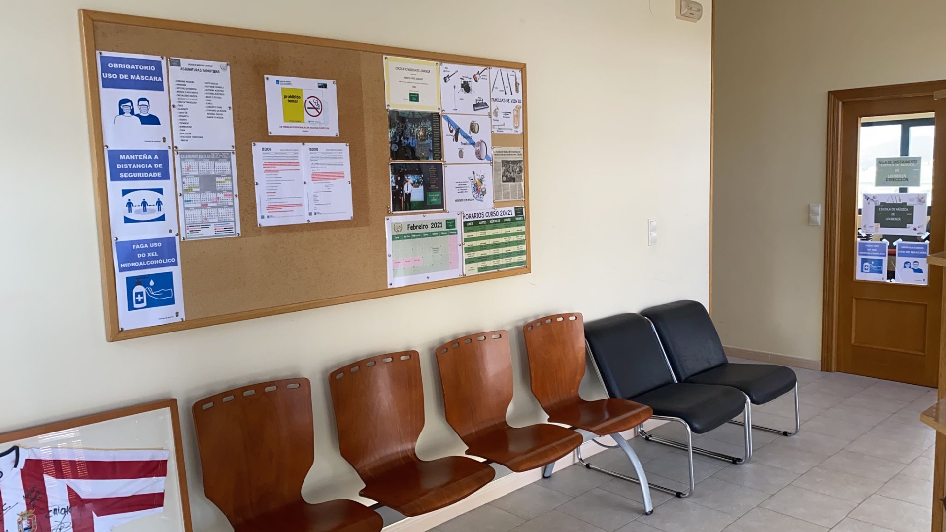 Cuando accedemos al edificio por su entrada principal nos encontramos un espacio que cualquier alumno puede usar para esperar su entrada a las aulas e informarse de cualquier tema de interés relacionado con la escuela.